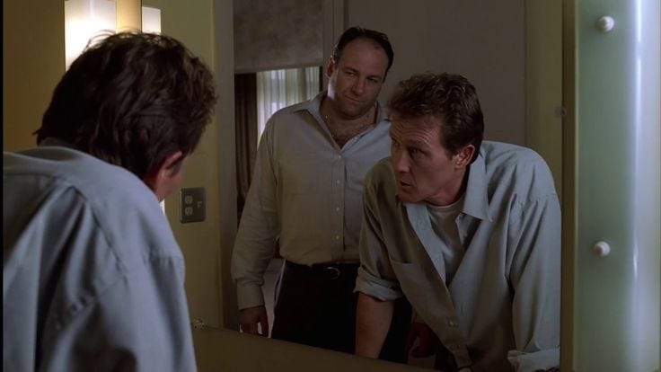 Tony learns that Scatino is not only broke, he’s in hock to other mobsters, too. After missing some payments, Tony beats him in his store. Scatino gives Tony his son’s car as partial payment, humiliating himself with his own family.