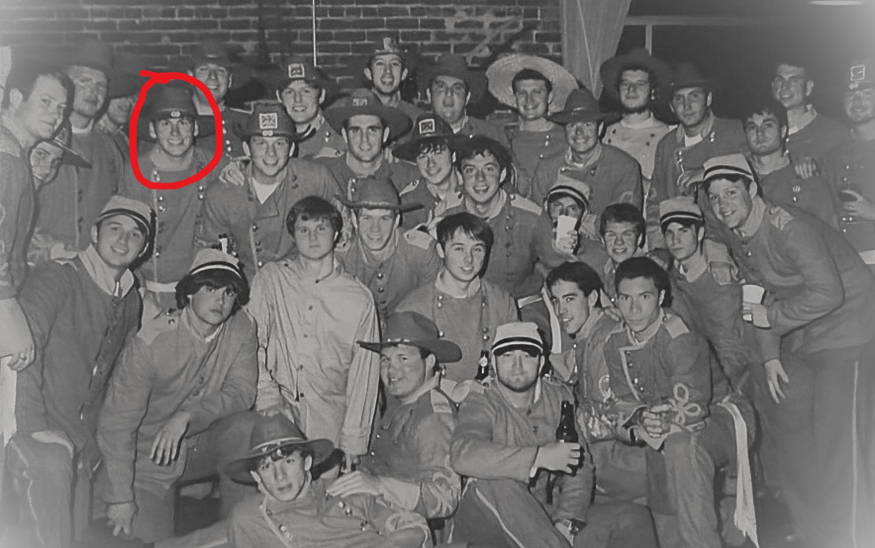 Griffin is a member of the Kappa Alpha Fraternity, an order that venerates the Myth of the Old South. They consider Confederate General Robert E. Lee to be their spiritual founder. For years, they held Old South balls where members dressed in Confederate regalia and women dressed in period dresses. The photo of Griffin is from one of those events.