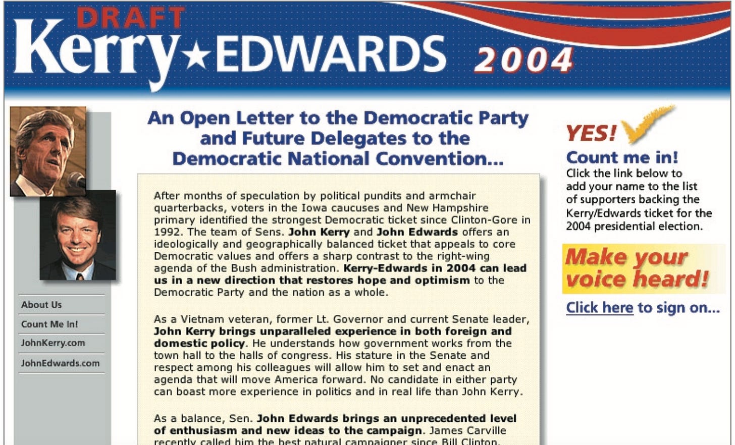 The New Hampshire primary results sealed the deal. Kerry won a solid plurality of the voters and Edwards came in a distant and disappointing fourth. South Carolina was now the North Carolinian’s best hope to stay in the race. So just days before the primary, we launched the Draft Kerry Edwards campaign.