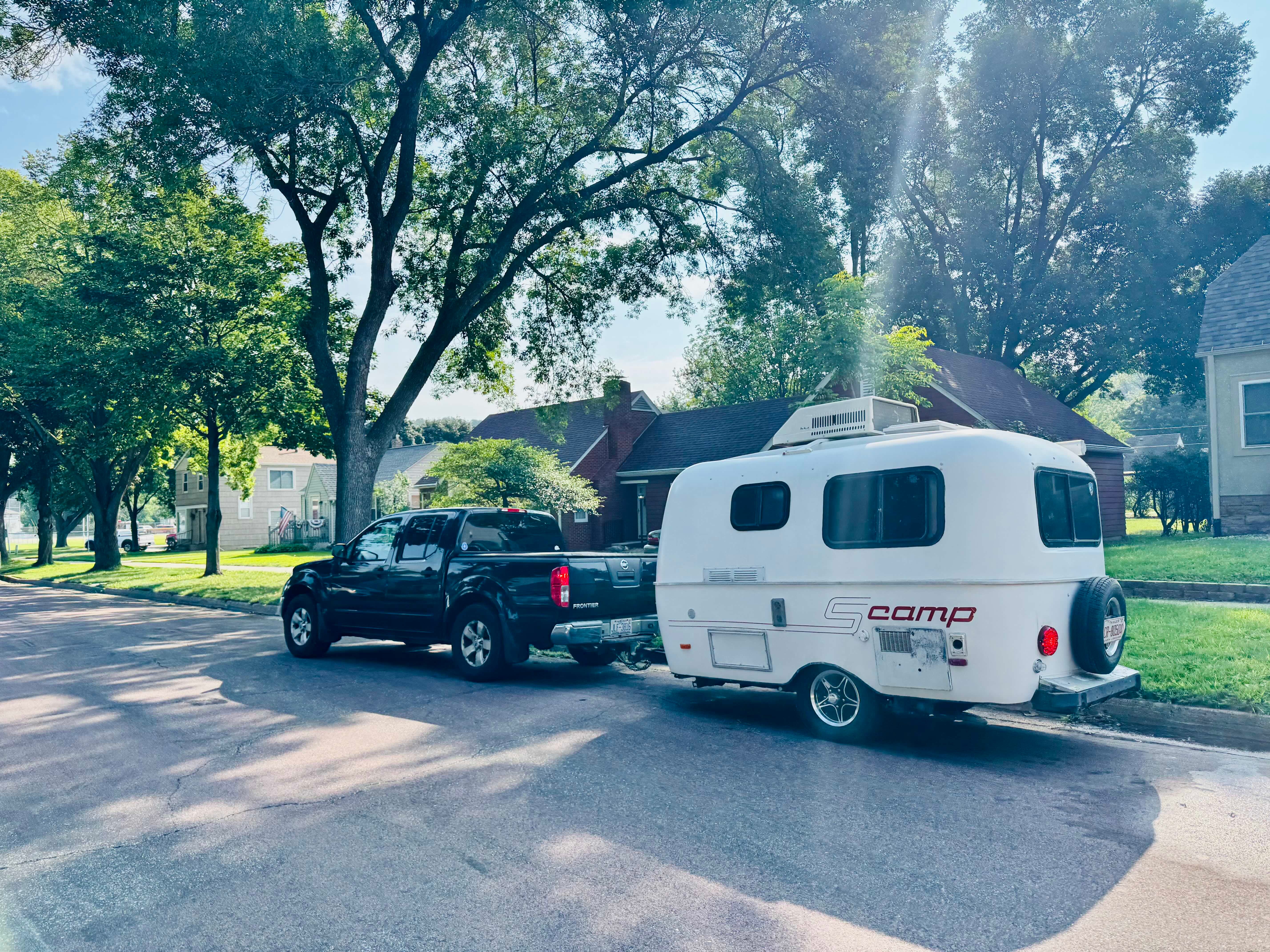 We walked around the trailer and examined the wheels. Both leaned inwards. They’d been that way for a while, but they may have gotten worse. I couldn’t tell for sure. I had the bearings replaced last year, though I worried about the axle. Scamp, the manufacturer, recommends replacing them every 15-20 years and this axle was going on 40 years old.